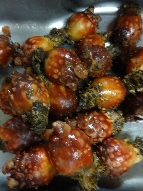 12 April ほやと、帆立を燻製にする。 ホヤとホタテを貰ってきました。 20個づつありますので 実験調理をしてみることにしました。 紐は掃除し、湯引きして冷水にとり、酢味噌和えに使うため冷凍保存。 紐も燻製にしてもいいのですが、 ホヤにも時間がかかりそうですので、今回はあきらめました。 ほやは立派な大きさで その分、水分がすごくて 日本酒で飲むことを想定し、米焼酎を使うことにしました。 日本酒ではなく、ビールで飲むならば、樽香の強いウイスキーを使ってみたかったです。 米焼酎 宮城県産の米を使った「東北古今 べにのほほ40」 塩気は、ほや塩をつくる人もいるくらいなので ホヤ自体の塩分を頼ることにしました。 米焼酎、砂糖の液で洗い、20分つけ置き 水気を拭き、 140℃20分低温でオーブン焼き、20分風に当て乾かすことで水分を抜きました。 これだけの水分があって、風干しでやるには気温も上がっていますのでやめたのです。 この水分を拭き取り、 表面に二段仕込み醤油を塗って 三種のチップで燻製にしました。 帆立は霜にした後、水分を拭き 日本酒、砂糖、塩の液に30分つけて 水分を拭き取り 二種のチップで燻製にしました。 にほんブログ村 にほんブログ村 にほんブログ村 にほんブログ村 [0回]