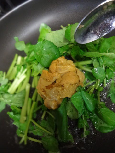 14 February うにクレソンに憧れて・・・。 有塩バターをフライパンへ。 刻んだクレソンを軽く炒め 生うにをそこに入れて絡めます。 加熱しすぎないほうが美味しいんじゃないかなと・・・ どちらも、生でもOKなので。 漫画「ワカコの酒4巻」に出ていた、うにクレソン。 飲食店で、1000円超えの価格で、私は食べないけど 作るんだったら別ww バッケトではなく、日本酒なので、小麦よりは米でしょう??と、 油で表面を焼いた餅を添えました。 まあまあ^^ つくったら、即食べたほうがいいと思います。 にほんブログ村 にほんブログ村 にほんブログ村 にほんブログ村 [0回]PR