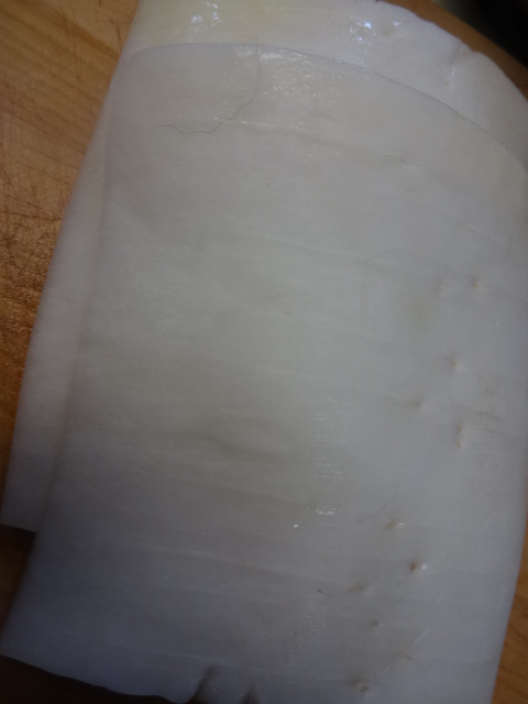 大根の皮を、昆布締めにする。