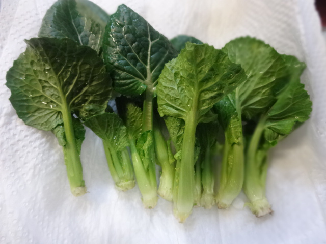 雪菜の、小さい葉の部分。