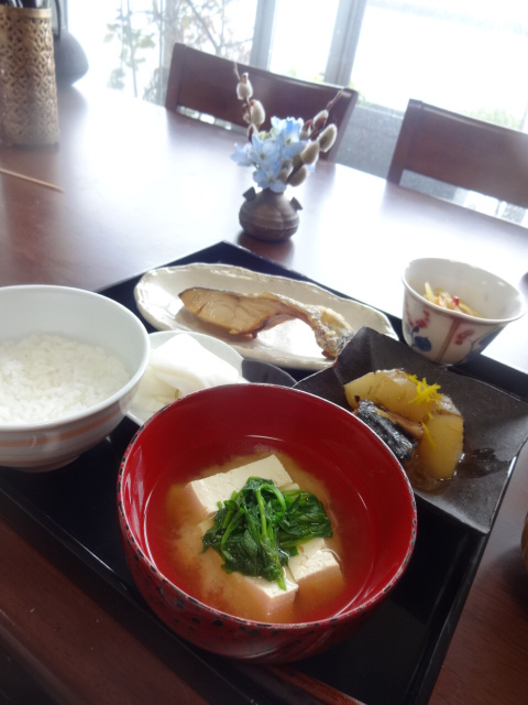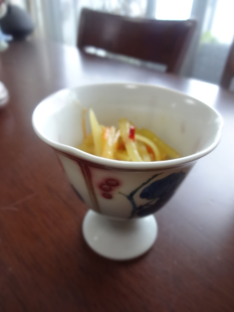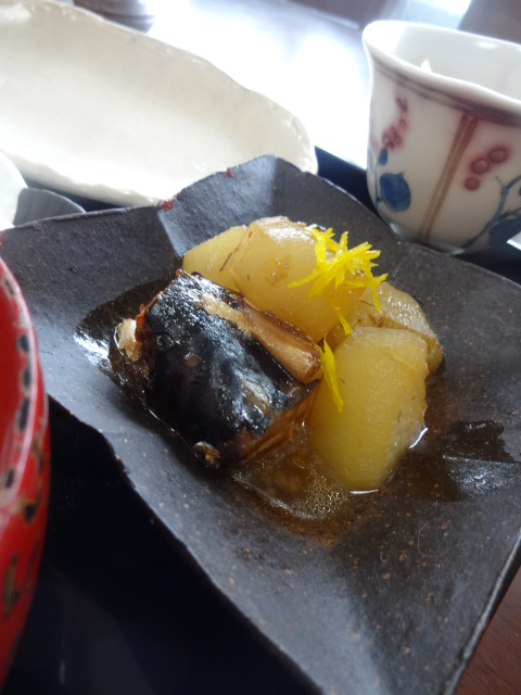 この日は、サバ缶と大根の炊いたの、塩金平をいただきました。
