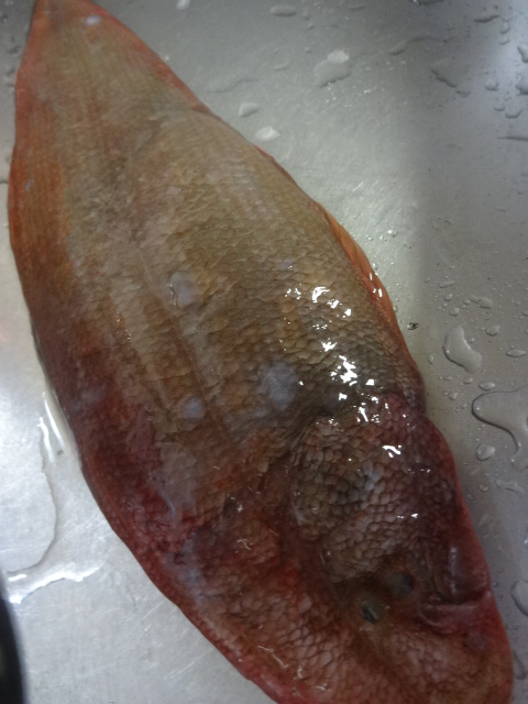 舌平目のあら、カサゴのあらを水で晒し