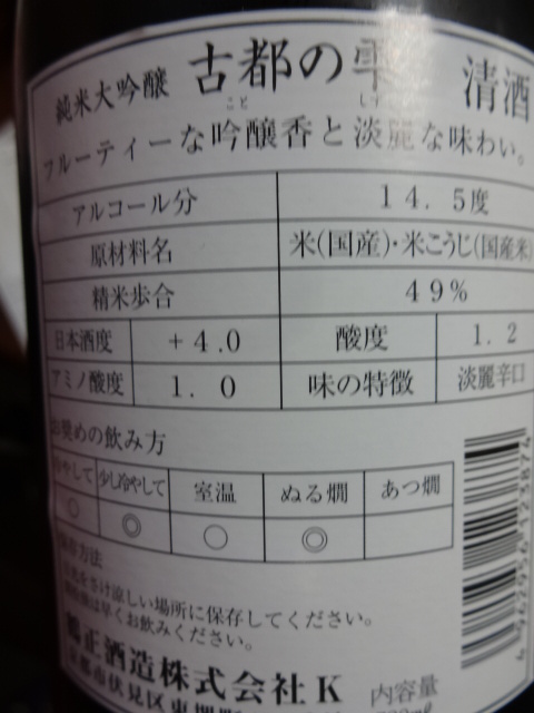 31 March 純米大吟醸 四合瓶990円 鶴正酒造【京都伏見】古都の雫 純米大吟醸 四合瓶990円衝動買い。 萩焼の薄手、煎茶湯呑を使用。冷酒、ひや、ぬる燗をいただいてみました。低めのぬる燗で、食中酒として飲むにはいいかなと思います。私個人としては、フルーティとは言えない。 にほんブログ村 にほんブログ村 にほんブログ村 にほんブログ村 [0回]