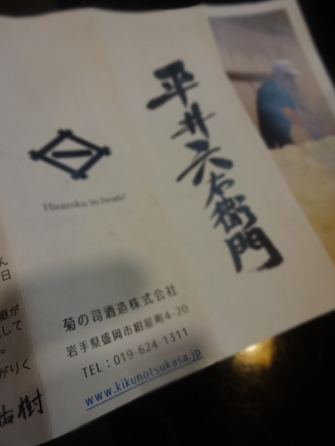 "Rokuemon Hirai平井六右衛門" is the name from which a head of a family of a sake brew warehouse as "KIKUNOTSUKASA" inherits generation after generation.