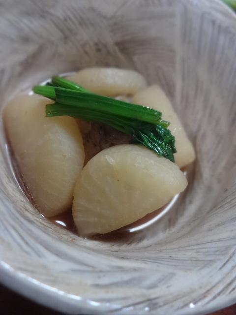 10 October つや姫なんどでもで、ブリ大根 南陽市東の麓酒造 純米吟醸つや姫なんどでも はじめての蔵。 何かの抱き合わせで購入。この時、つや姫を使った酒を飲みたくて、出羽桜だったのではなかろうかと思う。 だんだんと冷たいお酒が、身に凍みるので、明日に残し、明日は常温で飲む予定。 なめこおろし 鎌倉ソーセージ 岩本農園法蓮草炒め 北海道産 天然ブリ刺し ブリ大根 軸法蓮草 仁多新米ごはんを、紫蘇昆布で〆 魚屋さんがきれいにぶつ切りにしてくださったので、私は霜にして血合いを除き、昼間米のとぎ汁で、面取りした大根を下ゆでし、さらして待ち、出汁に、鰤と大根を入れて味を調え、いったんさまし凍みるのを待つ・・・この「しみる」時間がなかったので、明日のほうが美味しいはず。 にほんブログ村 にほんブログ村 にほんブログ村 にほんブログ村 [0回]PR
