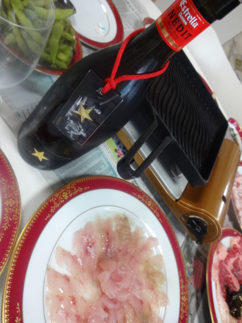 05 July 晩酌 セレブなエルブジ・ビアを新聞紙の上で スペインビール イネディット バルセロナNo.1のビールメーカー「ダム社」と エル・ブジ、料理長フェラン・アドリアが、 「香を楽しめるビール」として企画 発泡酒の分類。 「肉のふがね」から、お取り寄せ、 短角牛ローススライスと やまと豚バラスライス 大根おろし、万能ねぎ、ポン酢で 以上を、新聞紙の上で食う・・・。 にほんブログ村 にほんブログ村 にほんブログ村 [0回]PR