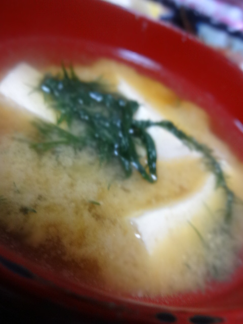 松藻と豆腐の味噌汁。