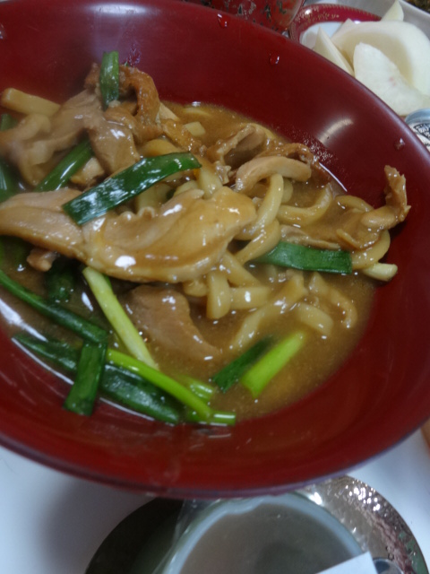 夜、煮込みカレーうどん(残ったので、必然的に)