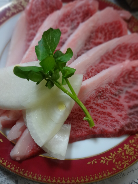 I bought in the favorite butcher shop "NikunoFugane", Kokusanushi Calvi. I decided to the Ishikawa"Kikuhime yamahaijyunnmaisyu "of this day .