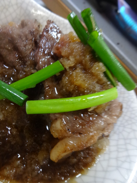 KikuhimeYamahaijyunnmaisyu , youmay not be able tofitso muchandsmellofgarlicisstrong,and diet.Thissake,taste,havea firm「しっかりsikkari」,is expressedthat there isthickness「厚みがあるatsumiga aru」. Therefore,I willfitinmeat dishes. That ”Iwate specialty arts and crafts” ironware”NANBUTEKKI”,Ibakeingrill pan. Andgratedradish,Hakatagreen onions,withponzu,youeatbakeddomestic beefribs. Koreanyakinikusauce,thanKusurinenhishio(Yan'nyomujan),fitssake.