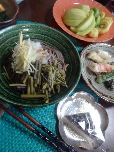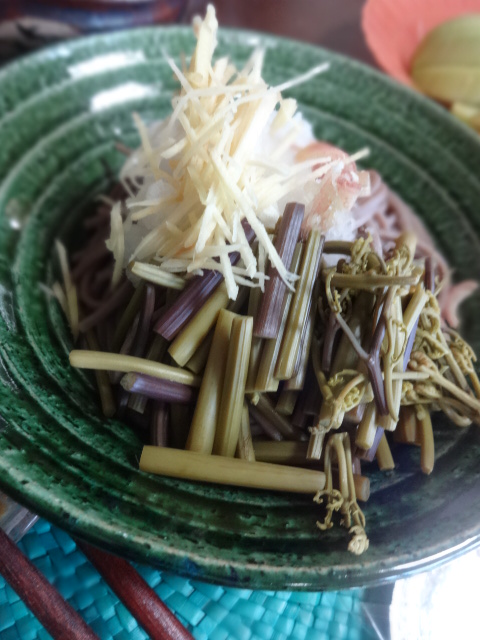 シオデ、蕎麦出汁ごま油漬け