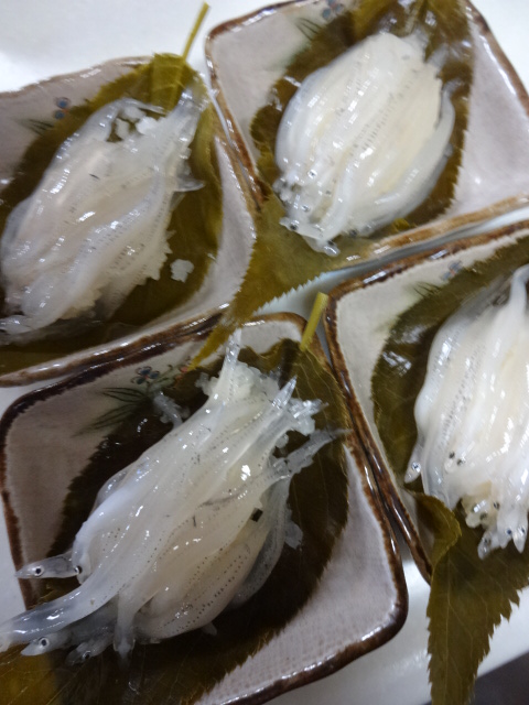 絹貝、墨烏賊、岩手県産間引き白葱ぬた和え