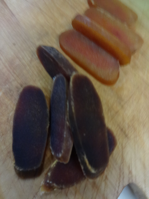 からすみ & 燻製からすみ、軽くあぶって