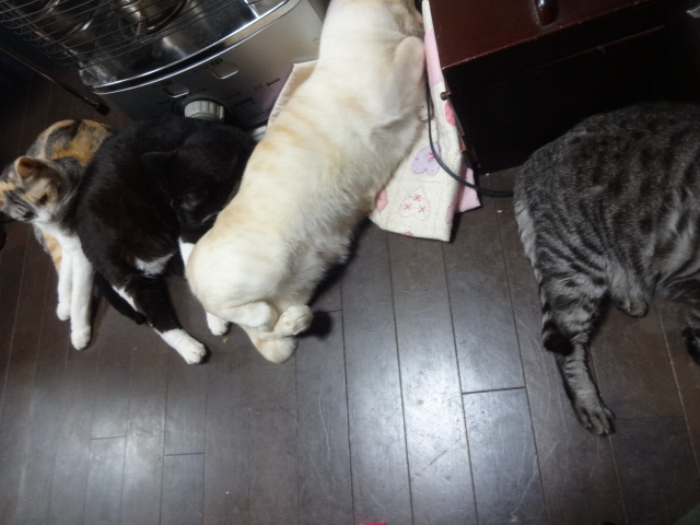 床暖には、猫の吹き寄せww