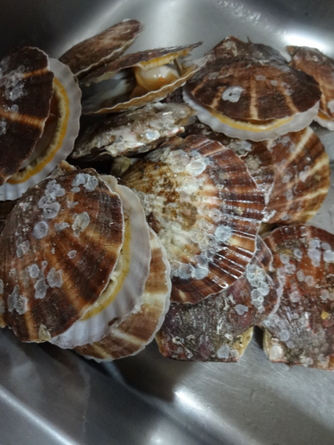 12 April ほやと、帆立を燻製にする。 ホヤとホタテを貰ってきました。 20個づつありますので 実験調理をしてみることにしました。 紐は掃除し、湯引きして冷水にとり、酢味噌和えに使うため冷凍保存。 紐も燻製にしてもいいのですが、 ホヤにも時間がかかりそうですので、今回はあきらめました。 ほやは立派な大きさで その分、水分がすごくて 日本酒で飲むことを想定し、米焼酎を使うことにしました。 日本酒ではなく、ビールで飲むならば、樽香の強いウイスキーを使ってみたかったです。 米焼酎 宮城県産の米を使った「東北古今 べにのほほ40」 塩気は、ほや塩をつくる人もいるくらいなので ホヤ自体の塩分を頼ることにしました。 米焼酎、砂糖の液で洗い、20分つけ置き 水気を拭き、 140℃20分低温でオーブン焼き、20分風に当て乾かすことで水分を抜きました。 これだけの水分があって、風干しでやるには気温も上がっていますのでやめたのです。 この水分を拭き取り、 表面に二段仕込み醤油を塗って 三種のチップで燻製にしました。 帆立は霜にした後、水分を拭き 日本酒、砂糖、塩の液に30分つけて 水分を拭き取り 二種のチップで燻製にしました。 にほんブログ村 にほんブログ村 にほんブログ村 にほんブログ村 [0回]PR