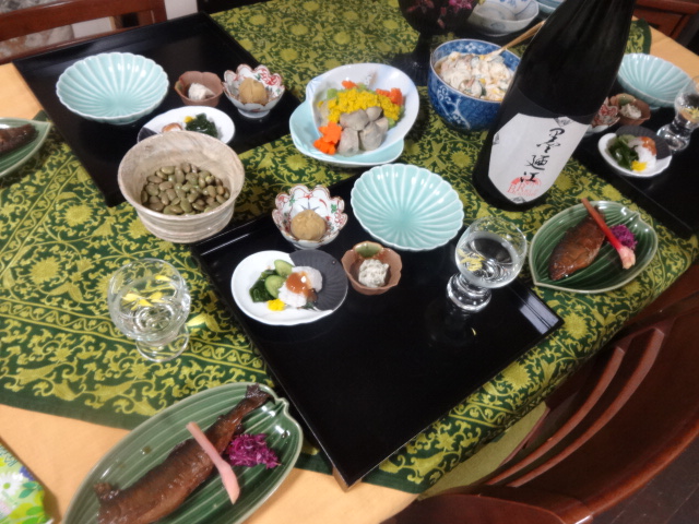 06 October 旧暦重陽の節句のこと 2014年10月2日 旧暦で重陽のお節句を こじんまりと、友人を招いて 墨廼江 純米 Rice is Beautifulの菊酒 長寿と健康を願いまして、乾杯。 〆は、栗ごはんと、本シメジの吸い物です。 何故、今、鱧落としなのか・・・・ 本日市内の調理師学校で、鱧の実習が行われた模様・・・。 そのため、小ぶりな活〆鱧が手に入ったからです。 岩本農園黒豆浸し物 二子里芋ずぼ芋 あゆぼー農園山葵大根 紅葉人参 菊花 鱧落とし きゅうり 若芽 菊花 梅肉餡 利平栗金団 子持ち鮎甘露煮 はじかみ もってのほか ポテトツナサラダ 利平栗ごはん 黒ゴマ 澄まし仕立て 若鶏 岩手県産本占地 紅葉人参 三つ葉 酢橘 友人持参の天遊琳 2003年度純米酒 いろんなお酒を並べて飲むのもいいものですが、 一升瓶2本をゆっくり飲むのもまたいいものだと思った夕べでした。 にほんブログ村 にほんブログ村 にほんブログ村 にほんブログ村 [0回]PR