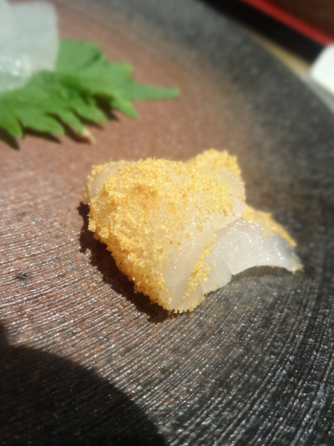 14 June 日本酒bar Homuraで、少しづついろいろ 的鯛 新政頒布会二種飲み比べ ふちこさんそここさんと — 場所: 日本酒bar Homura 我が家の食卓を支える魚の師匠から 的鯛(まとうたい)を買って行かれたので、 是非というのを伺いましたので まずは、このお刺身から。 煎り鯖真子を添えて。煎ってるわけでは無いんだけど・・・。 香ばしくて美味。これは非常によかったです。 ほかにも、少しづついろいろ飲みました。 胡瓜マヨを所望。 マスター及川、胡瓜とマヨだけでは、プロとしてお金をいただけないとか御謙遜で、 じゃじゃ味噌も添えていただき・・・このじゃじゃ味噌、とんこつラーメンが好きな方は、好きなはず。 箸休めに、甘納豆もいただきました。御馳走様です。 程よく飲んだので、そこ子さんほどではなかったです。 にほんブログ村 にほんブログ村 にほんブログ村 にほんブログ村 [0回]PR